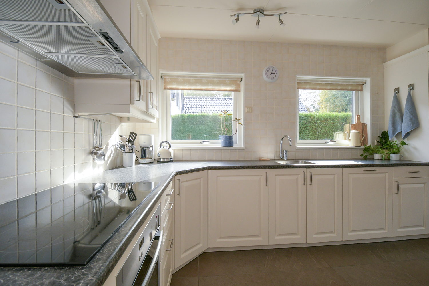 De gesloten moderne keuken met vloerverwarming is toegankelijk vanuit de woonkamer en de hal. De keuken beschikt over diverse inbouwapparatuur, waaronder; boiler, inductie kookplaat, heteluchtoven, koelkast en vaatwasser (Neff). Vanuit de keuken is er direct toegang tot de bijkeuken met opstelplaats voor witgoed. Vanuit de hal is de werkkamer/slaapkamer met badkamer bereikbaar. De moderne badkamer met vloerverwarming is in 2020 vernieuwd en heeft een ruime inloopdouche met zitgedeelte en een dubbele wastafel.