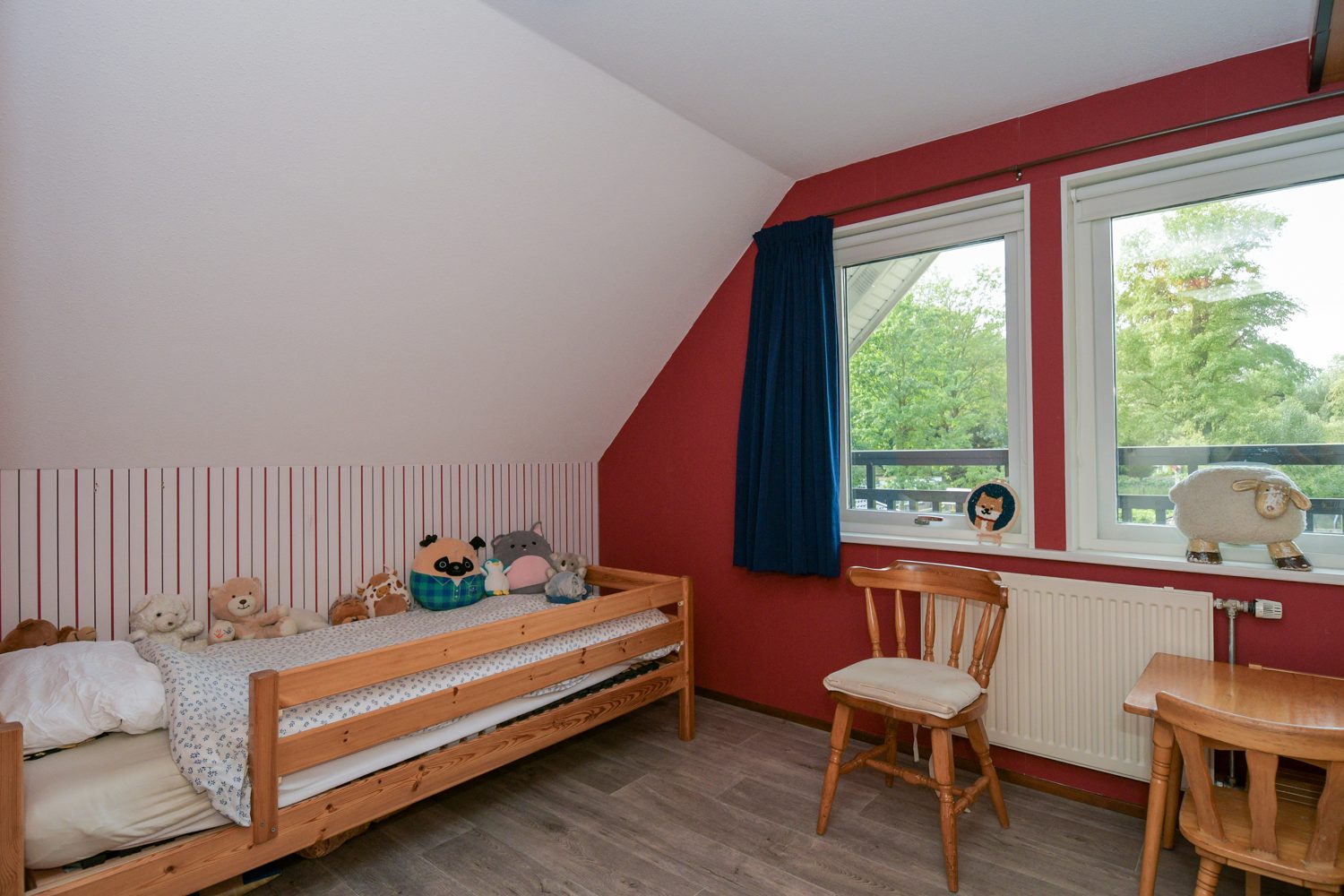 Op de eerste verdieping zijn vier ruime slaapkamers, waarvan 2 toegang hebben tot het fraaie balkon. Met karakteristieke details zoals de balkons over de volle breedte met stijlvolle balustrades, ademt het geheel die typische Scandinavische sfeer en warmte. De standaard badkamer beschikt over een douchecabine, wastafel en tweede toilet. De CV ketel, Nefit uit 2012 en de omvormer voor de zonnepanelen bevinden zich in een separate ruimte op de overloop.