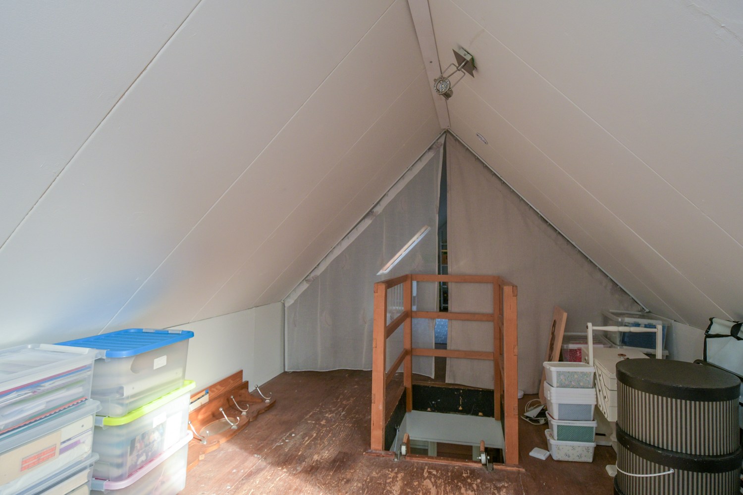 Via een vlizo trap kom je op de zolderverdieping met stahoogte, waar genoeg ruimte is voor een extra slaapkamer. Een vaste trap naar de zolderverdieping behoort zeker gezien de verkeersruimte tot de mogelijkheden waardoor er extra woonruimte kan worden gecreëerd.