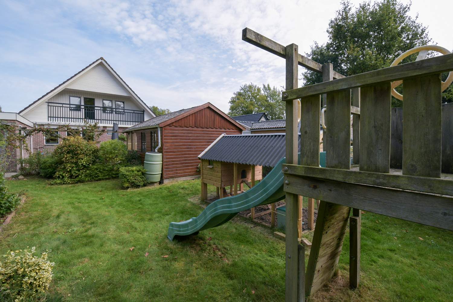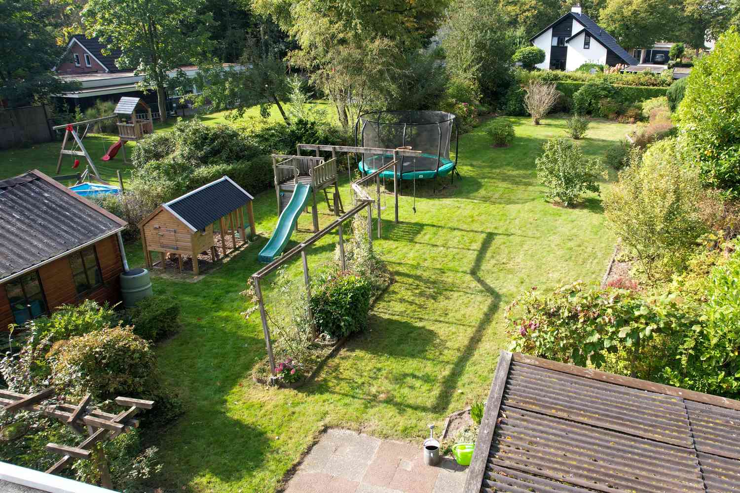 Achter het huis ligt de enorme, extra diepe tuin (ca 47 m), waar je volop kunt genieten van het buitenleven; rijk aan groen en met volledige privacy – je zit niemand in de weg en niemand zit jou in de weg. De tuin biedt talloze mogelijkheden: een grote moestuin voor verse groenten, een stukje terrein voor klein vee of een paar kippen die rondscharrelen onder de fruitbomen. En ja, wie droomt daar nu niet van: elke ochtend verse eitjes uit eigen tuin!
