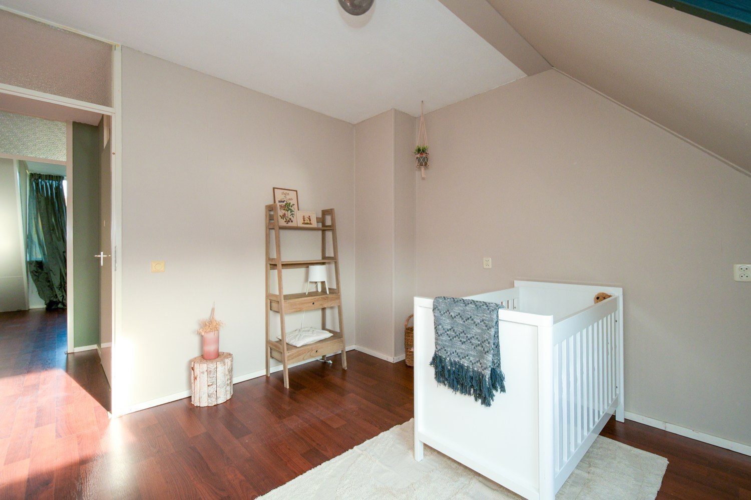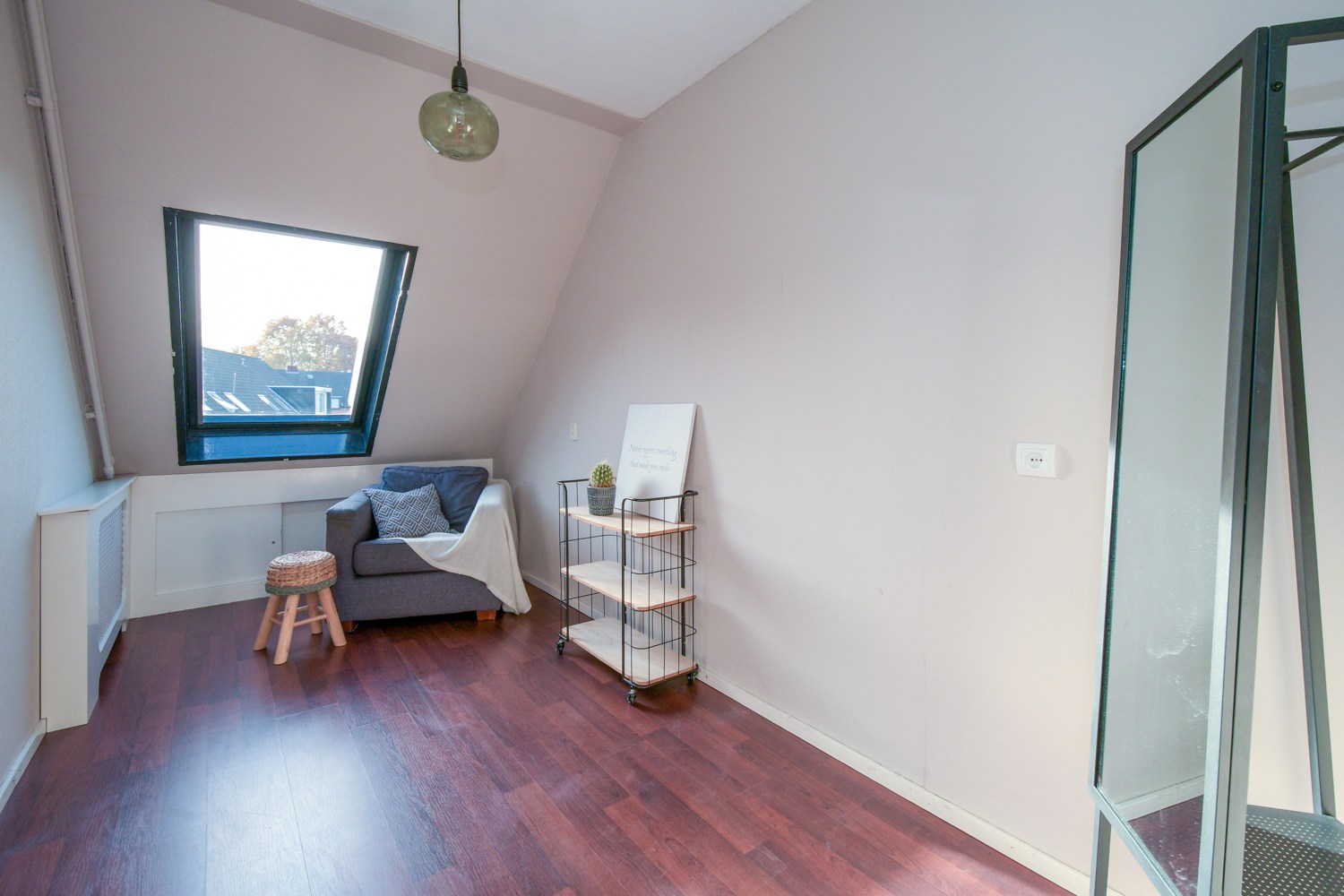Op de eerste verdieping vind je drie slaapkamers en een de badkamer mét 2e toilet. Via een vaste trap naar de zolder bereik je de 4e kamer. Achter het huis ligt de zonnige, onderhoudsvriendelijke tuin op het zuiden met een ruime berging én achterom. Het schilderwerk aan de gehele buitenzijde van de woning én de berging is recent professioneel uitgevoerd.