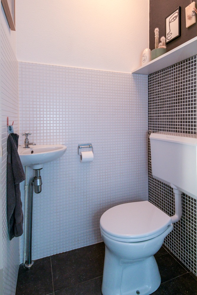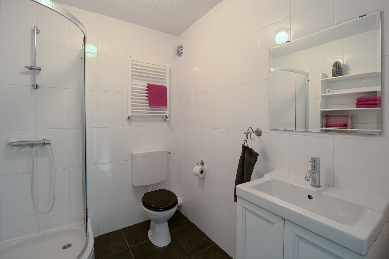 Op de eerste zijn drie slaapkamers en een badkamer aanwezig. De nette badkamer heeft een douchehoek, wastafelmeubel en een extra tweede toilet.
