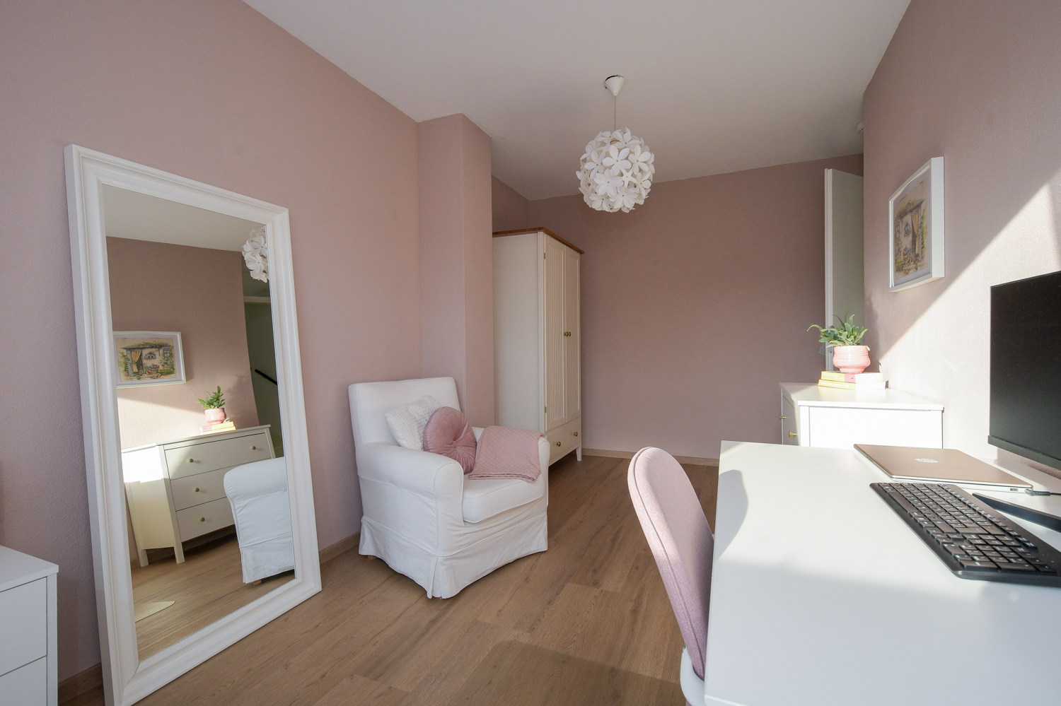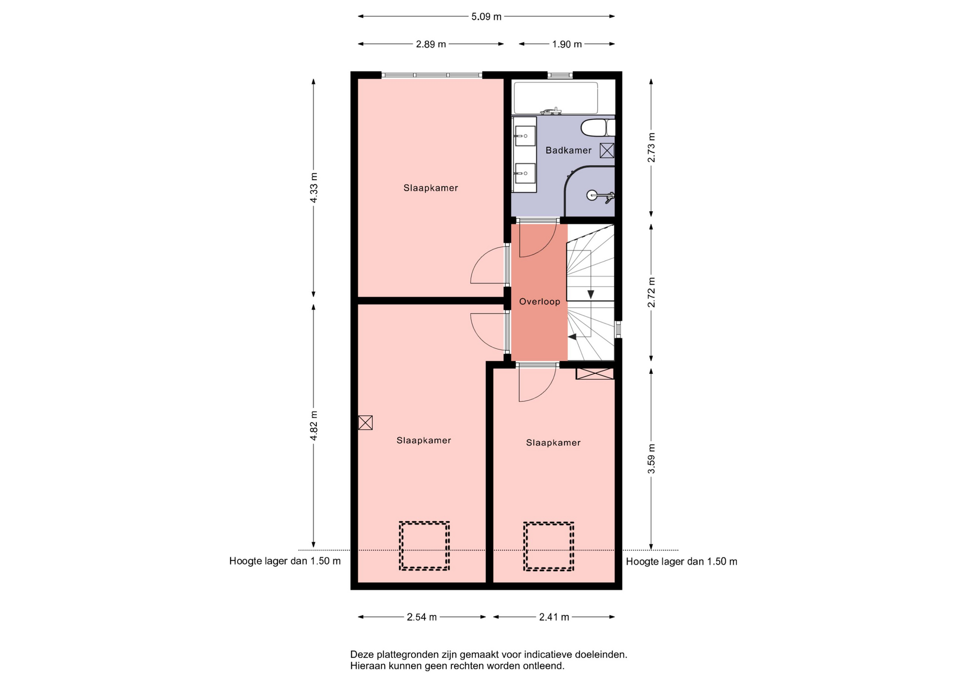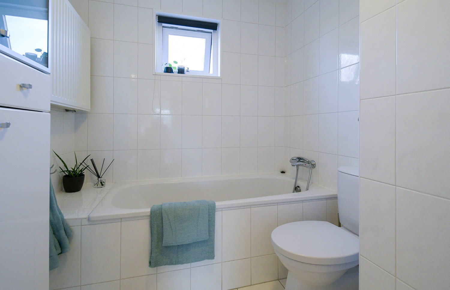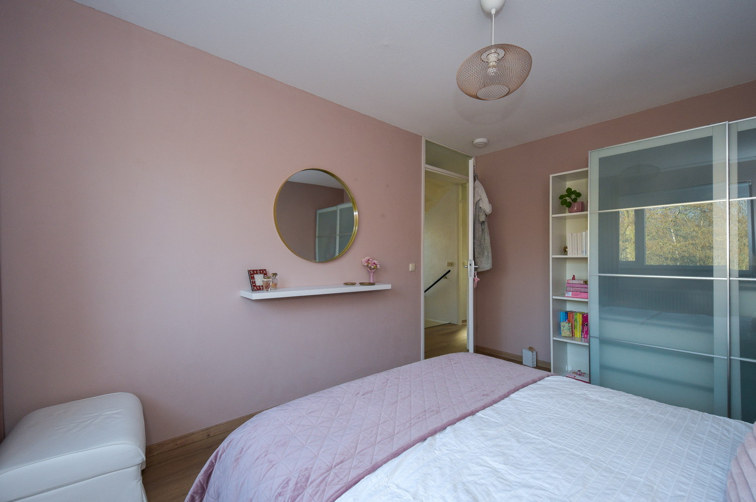 Op de eerste verdieping bevinden zich drie slaapkamers met een oppervlakte van respectievelijk ca 12,3 m2 , 8,7 m2 en 12,5 m2. De slaapkamers hebben laag temperatuur radiatoren waardoor de woning bijzonder geschikt is voor verdere verduurzaming. De complete badkamer in lichte kleurstelling en met vloerverwarming is goed onderhouden en voorzien van ligbad, douchehoek, extra toilet en 2 wastafels.