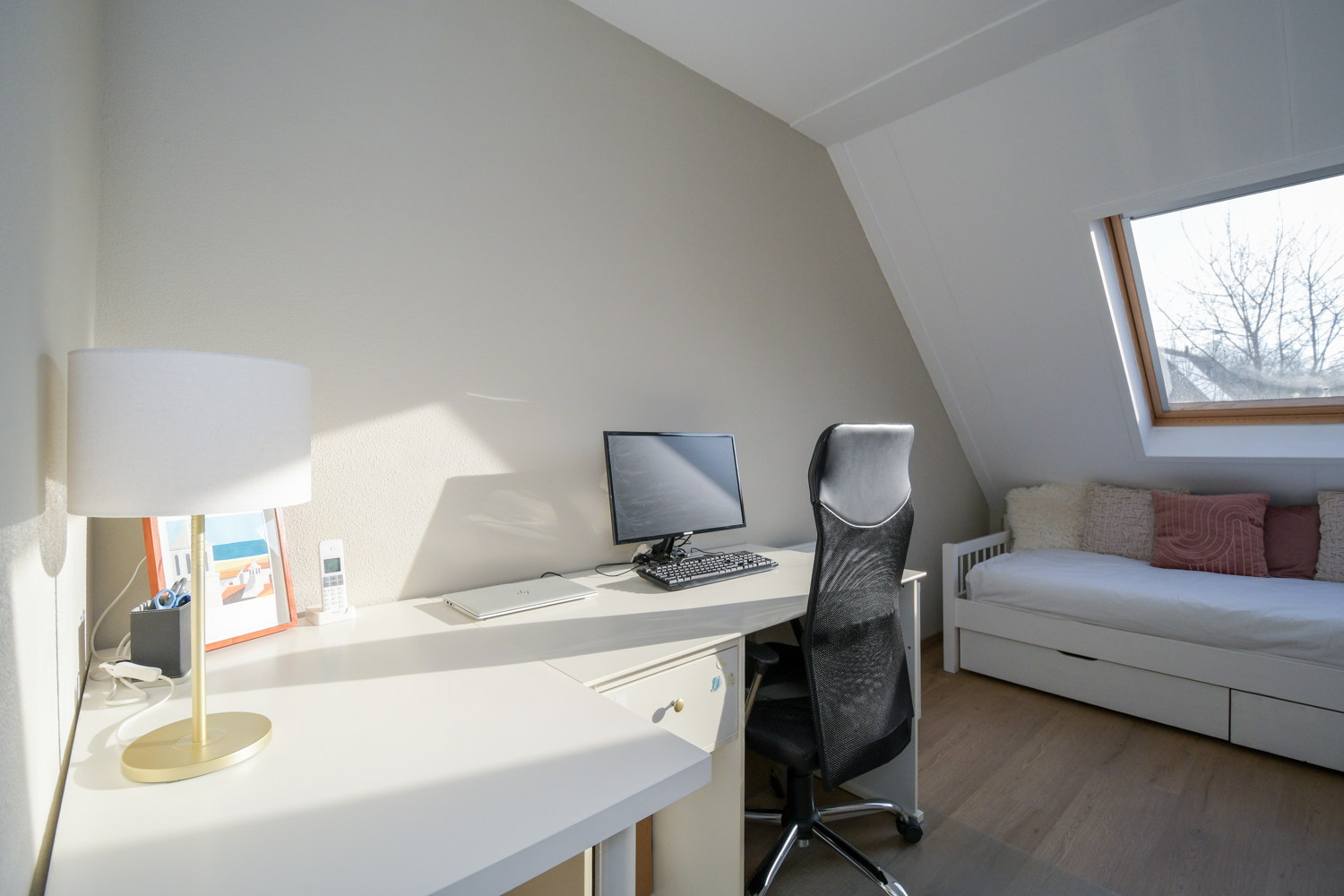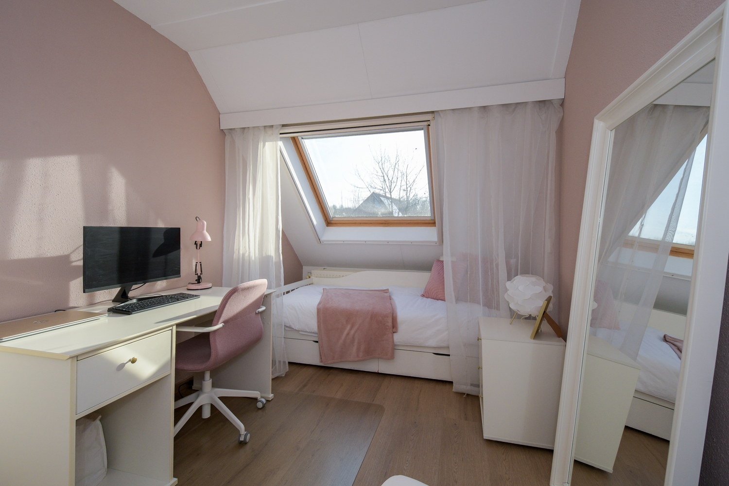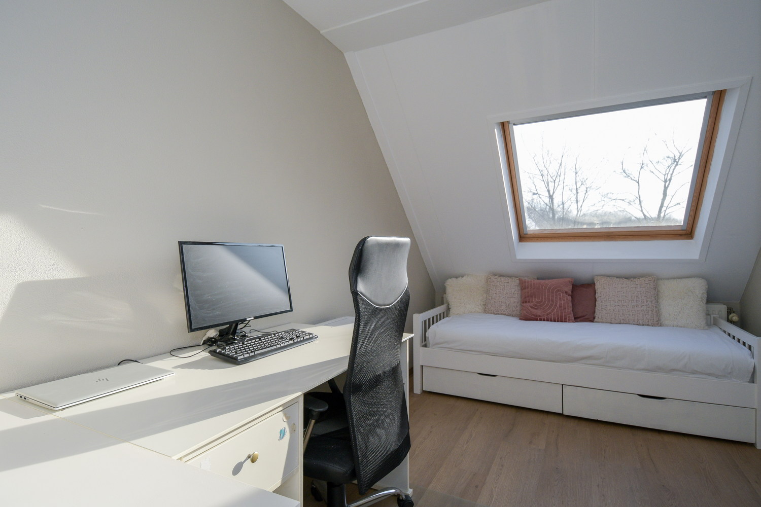 Een vast trap leidt naar de tweede verdieping waar zich nog een ruime vierde slaapkamer bevindt met toegang tot een balkon. Hier kun je op mooie zomeravonden heerlijk genieten van het uitzicht. Op de zolder is een ruime berging aanwezig. Hier bevindt zich ook de WTW installatie. Op de zuidgevel liggen 2 warmwater zonnecollectoren en op het platte dak liggen 4 zonnepanelen.