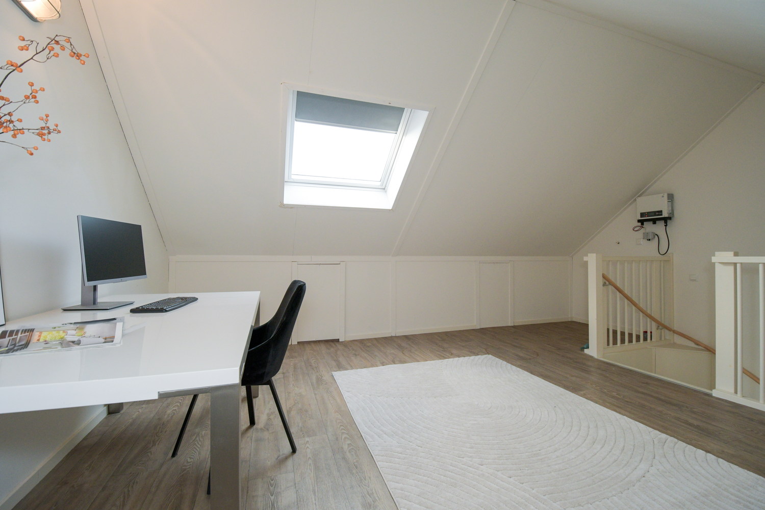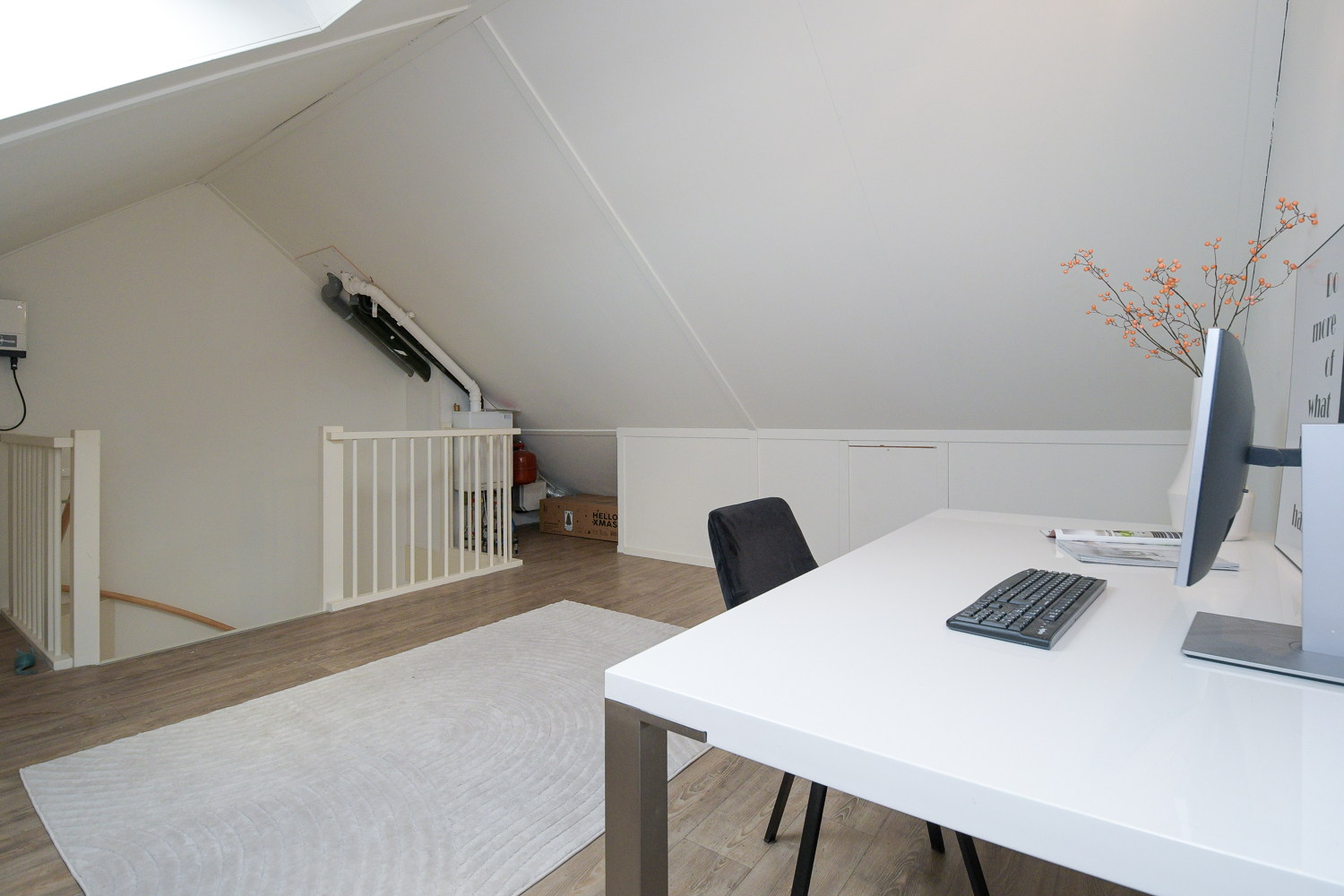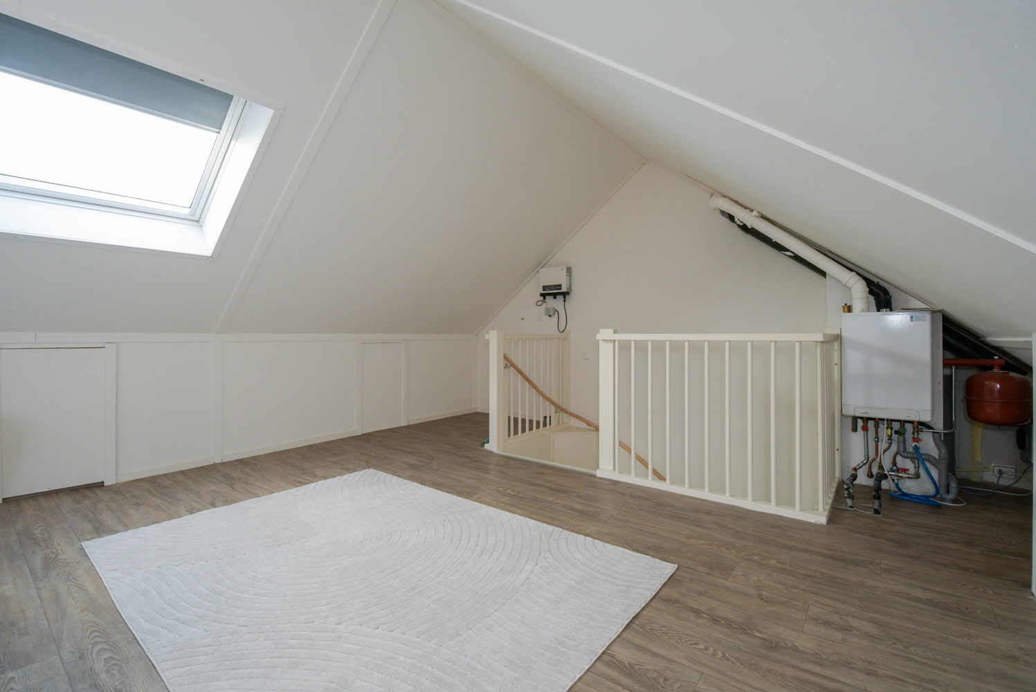 Deze verdieping is nu ingericht als kantoor met vinyl als vloerbedekking, maar is eventueel zeer geschikt als vierde slaapkamer (ca 18 m2). Tevens bevinden zich hier de stelplaats van de HR CV ketel, merk Intergas (2018), de omvormer van de zonnepanelen en de mechanische ventilatie.