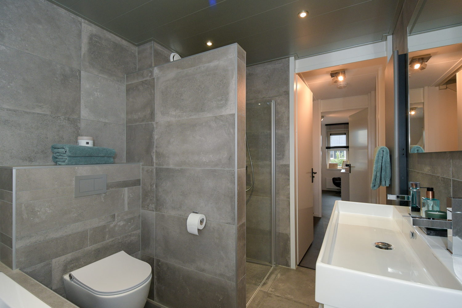 Inloopdouche, ligbad, toilet, en wastafelmeubel