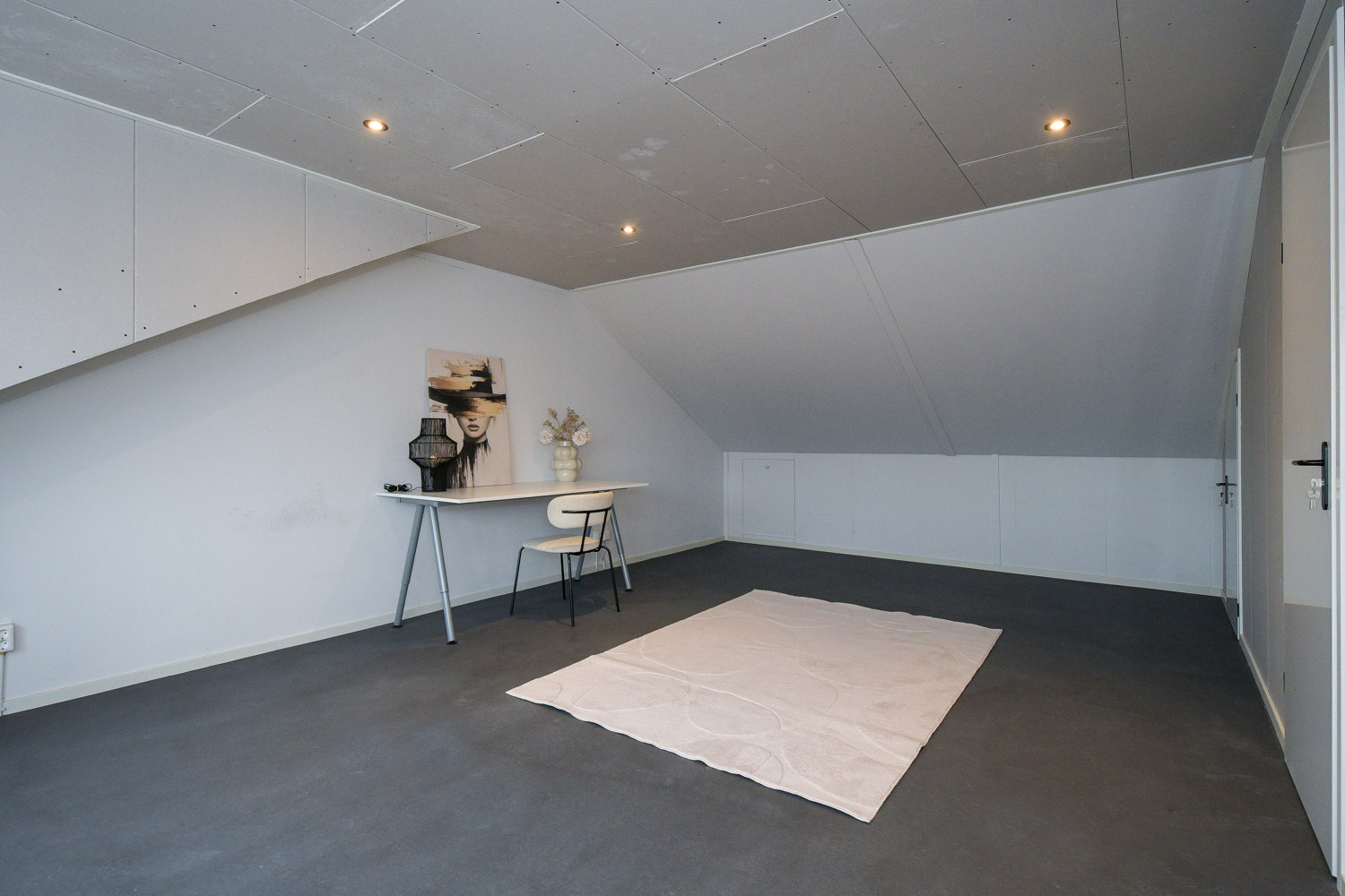 Deze verdieping is bereikbaar via een vaste trap. De royale dakkapel biedt een prachtig panoramisch uitzicht. Door de dakkapel is er een riante leefruimte gecreëerd met een natuurlijke lichtinval. De ruimte wordt gekoeld door een design airco (breezehub) welke is weggewerkt in het plafond en daardoor niet opvalt. De opstelling van de HR CV ketel, ventilatie warmtepomp en WTW unit zijn netjes weggewerkt in een separate ruimte. Achter de knieschotten is nog volop praktische bergruimte.
