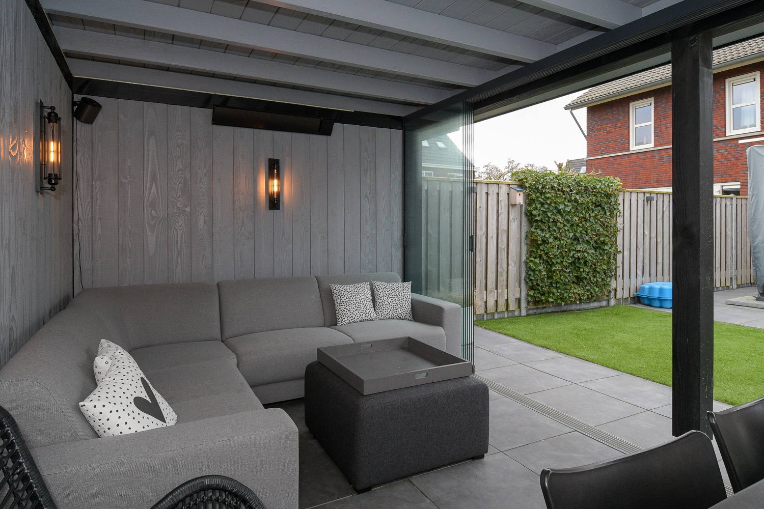 De tuin is gelegen op het oosten en beschikt over diverse terrassen. In de tuin is een sfeervolle overkapping (2020) geplaatst met een oppervlakte van ca 18 m2. De overkapping is afsluitbaar met een glazen wand, waardoor je hier tot in de late uurtjes droog en warm kunt vertoeven. Daarnaast is er nog een berging met ruimte voor fietsen en opslag.