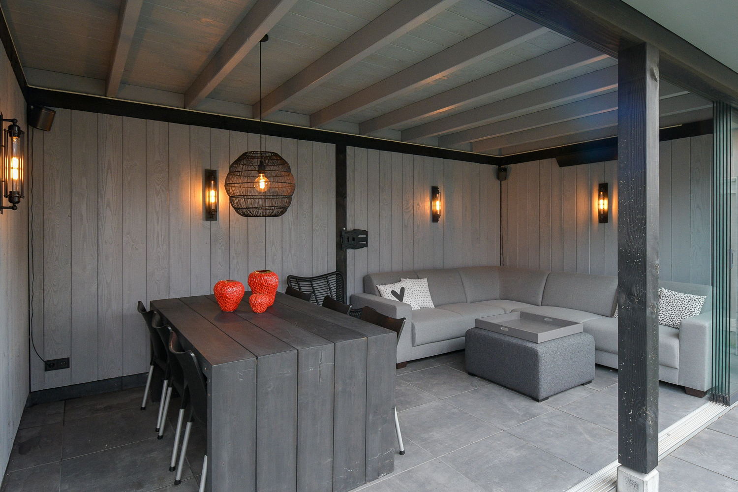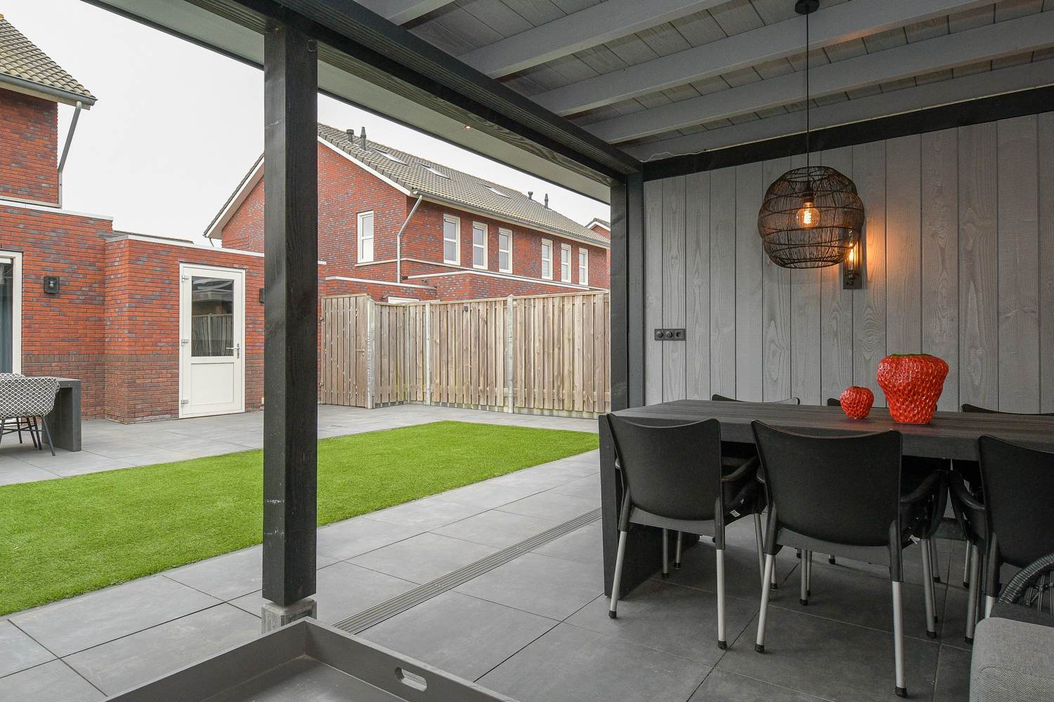-houten overkapping met schuur over volle breedte;