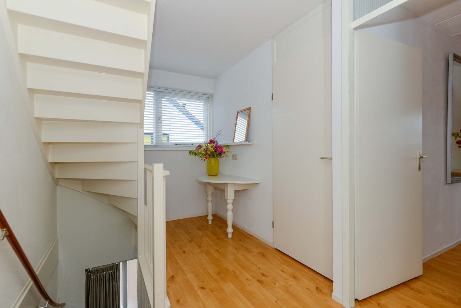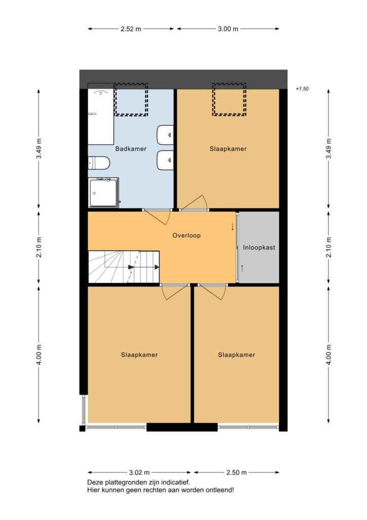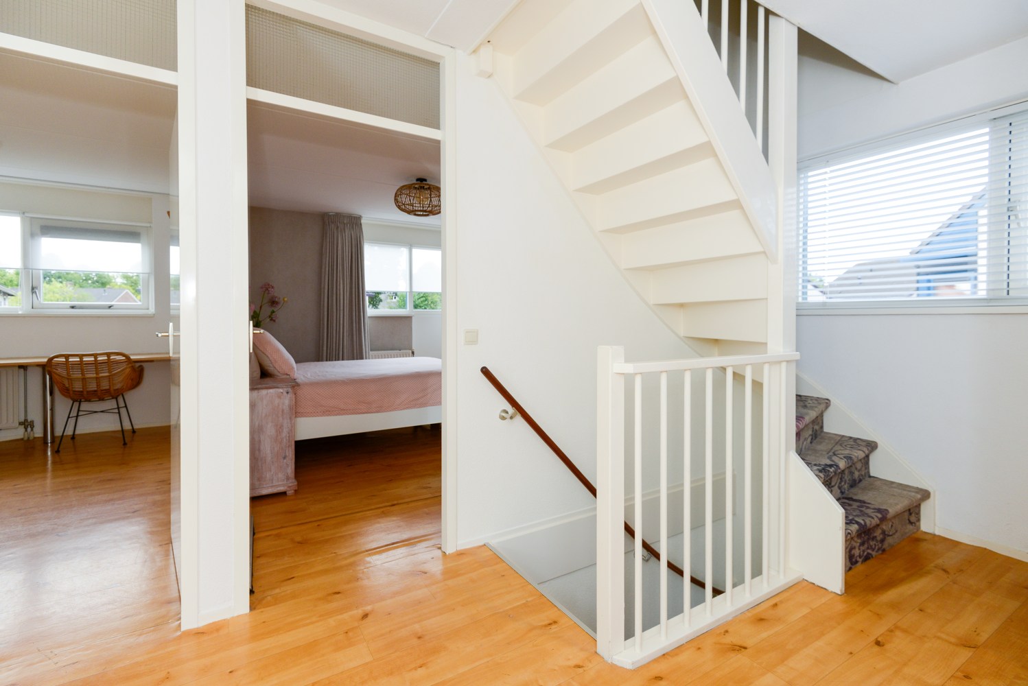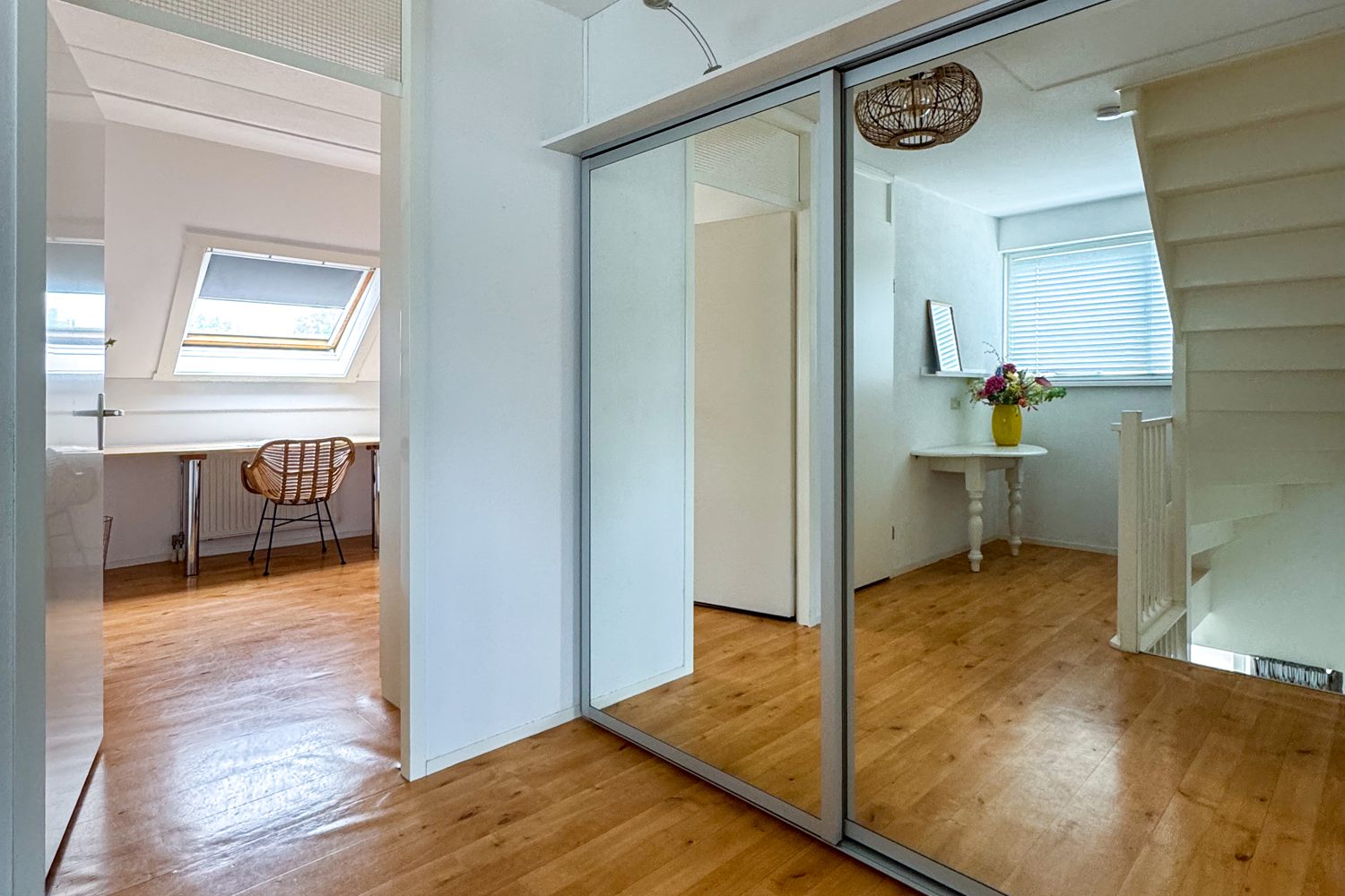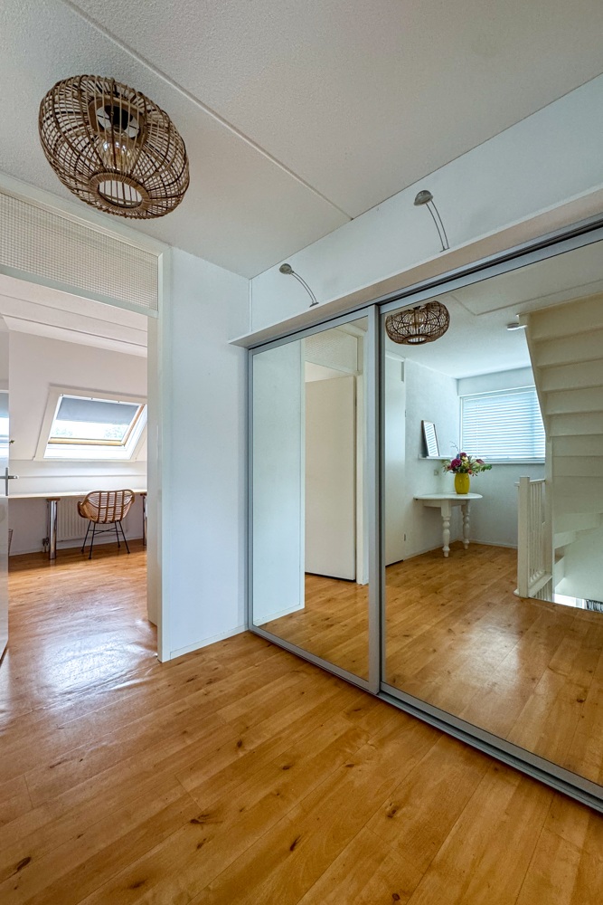 Op de eerste verdieping bevinden zich drie ruime slaapkamers, inloopkast met spiegelwand en de badkamer. De slaapkamers zijn licht en praktisch ingedeeld, ideaal voor een gezin. De complete badkamer beschikt over een ligbad, inloopdouche, dubbele wastafel en een tweede toilet.