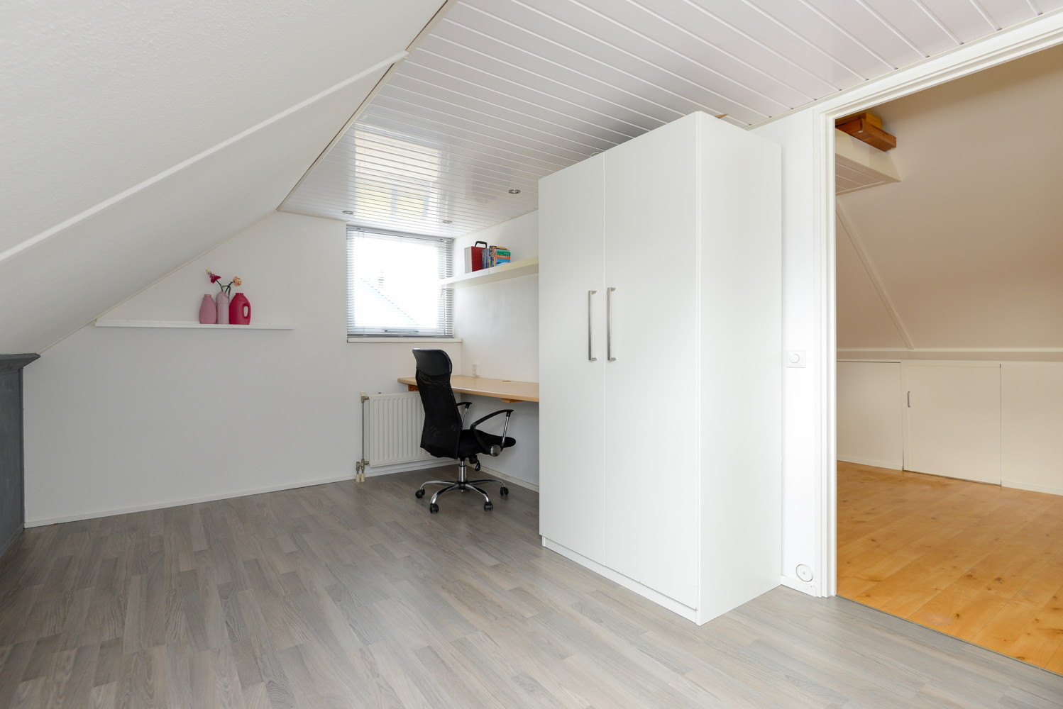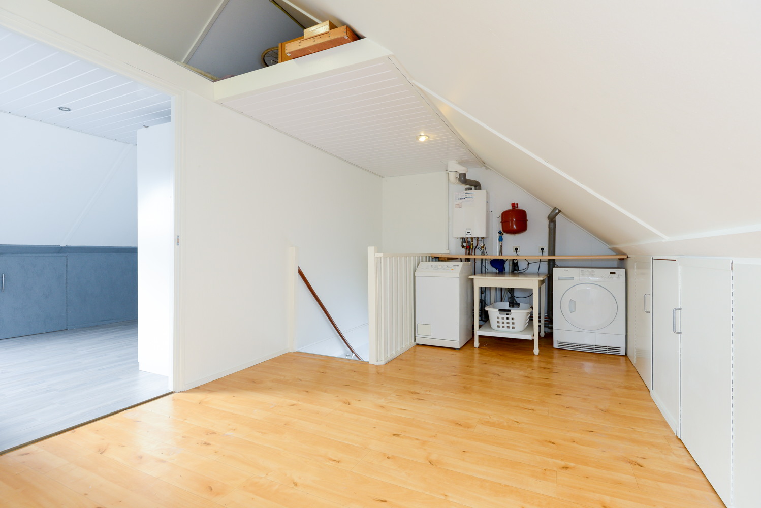 Een vaste trap leidt naar de zolderverdieping met overloop. Hier bevindt zich een vierde slaapkamer met zelfs nog de mogelijkheid voor een extra vijfde slaapkamer. Er is een grote overloop met opstelplaats van de HR CV ketel (in eigendom), merk Remeha (2012), witgoedaansluitingen en veel bergruimte. Er is nog een extra kleine vliering aanwezig in de nok van de woning.