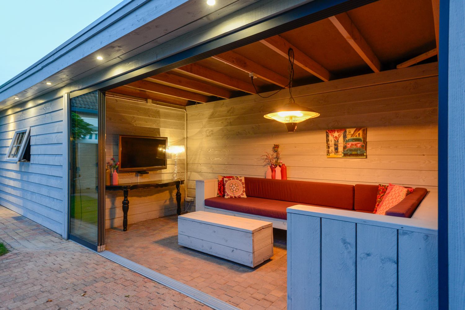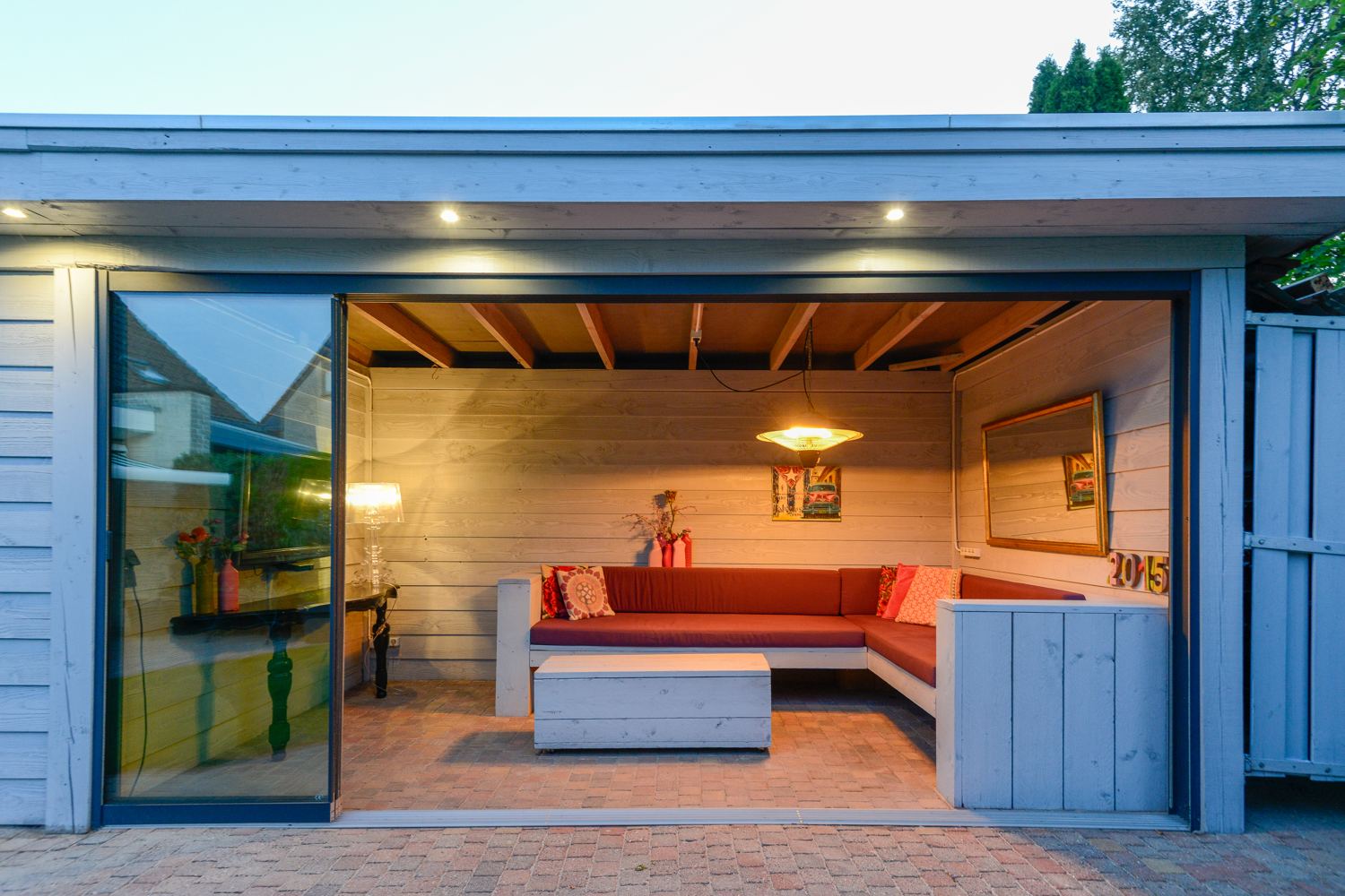 -grote overkapping (9 bij 2,5) met extra bergruimte (2015).