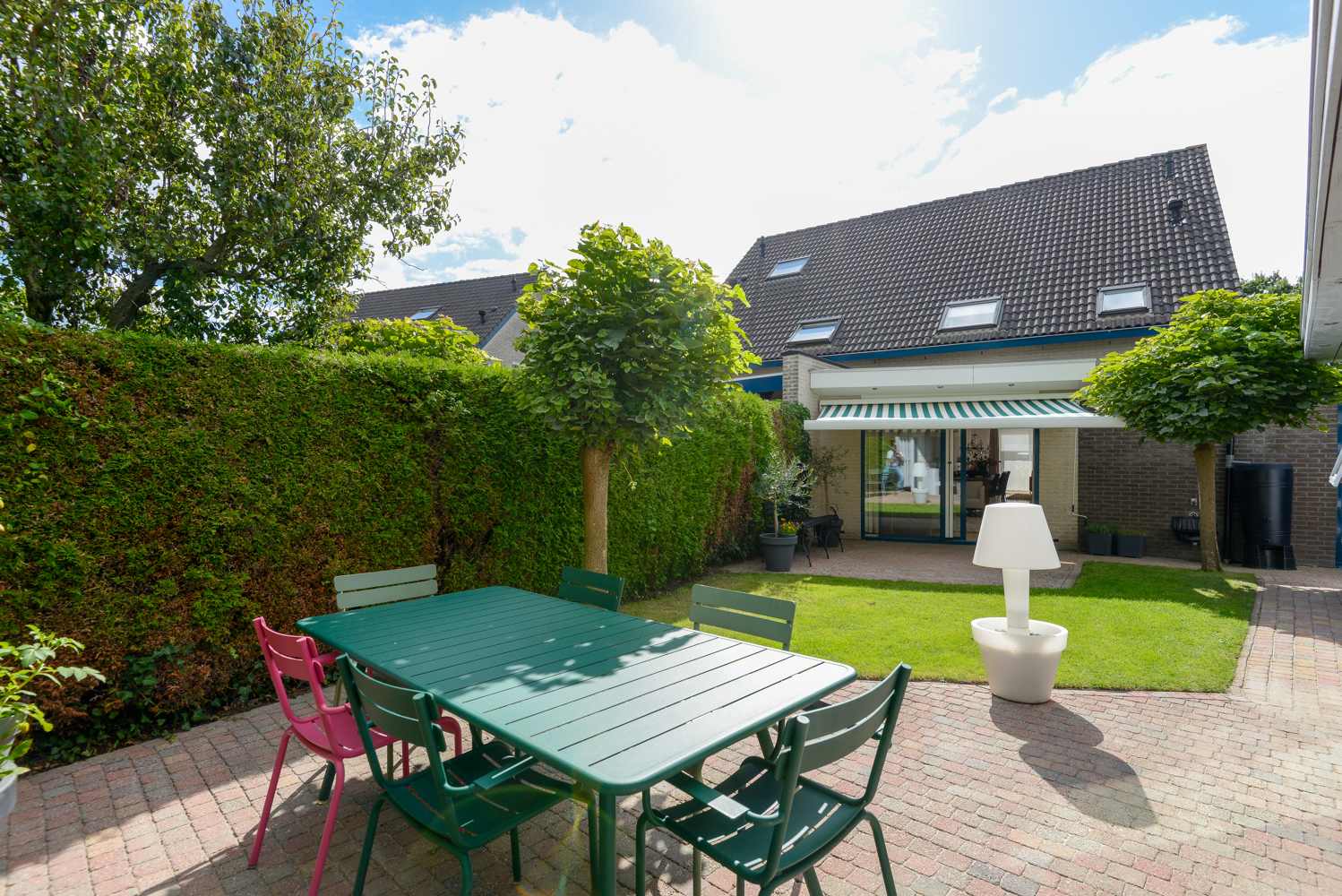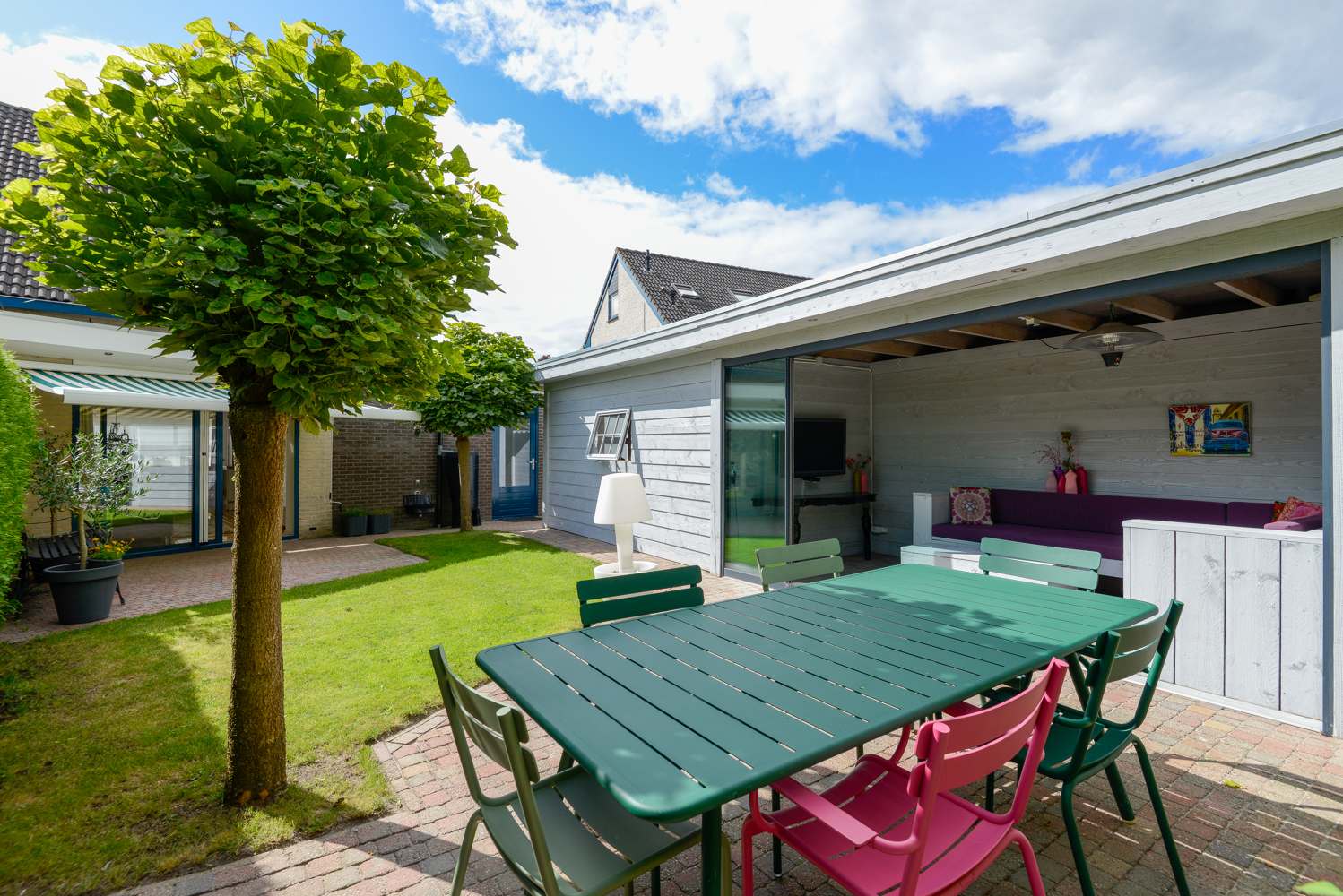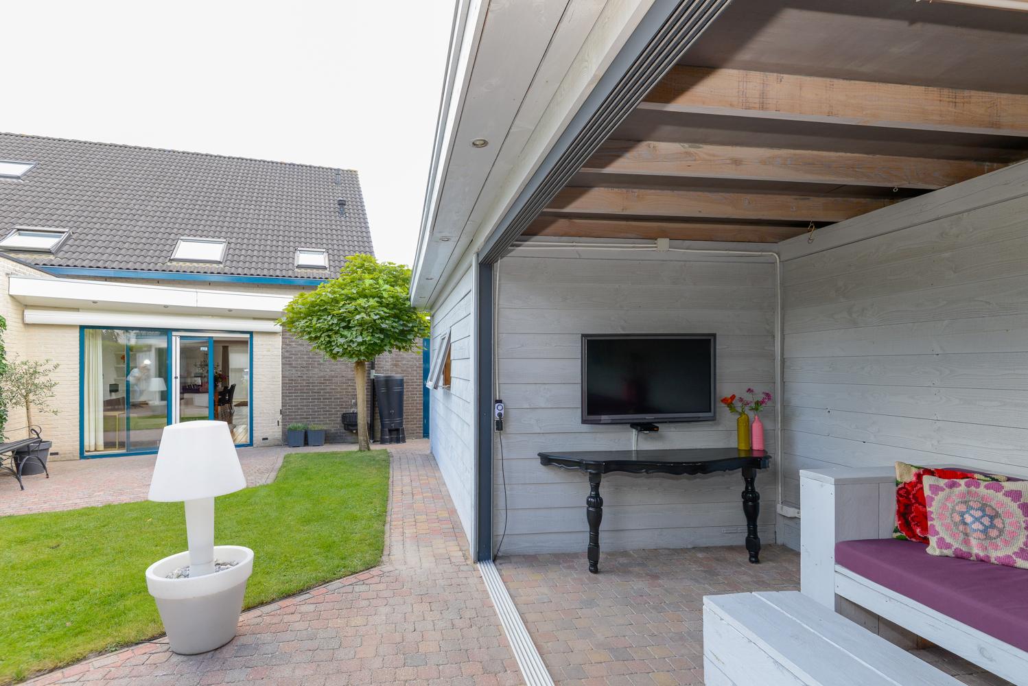 De uiterst sfeervolle tuin, met twee terrassen is gelegen op het noordwesten en biedt volop zon en privacy. De grote houten overkapping (2015) van 9 bij 2,5 meter met 5 verschuifbare glazen deuren, is de blikvanger. Hier kun je in elk seizoen buiten genieten – van vroege voorjaarszon tot lange zomeravonden en knusse herfstmiddagen. Naast de overkapping is ook nog een schuurgedeelte met veel bergruimte! De woning is door de jaren heen gemoderniseerd en uitgebreid, waardoor er een heerlijk gezinshuis is ontstaan met volop leefruimte, comfort en een mooie afwerking. Kortom een heerlijke plek om te wonen.