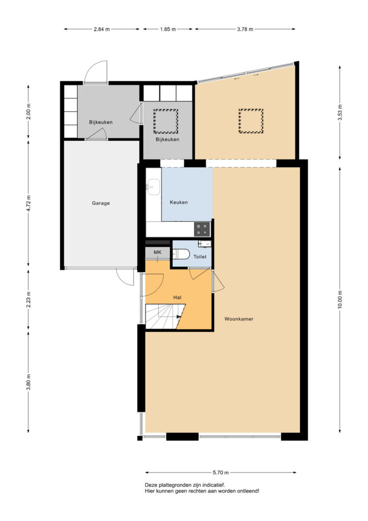 -verlengde keuken en inpandige bijkeuken;