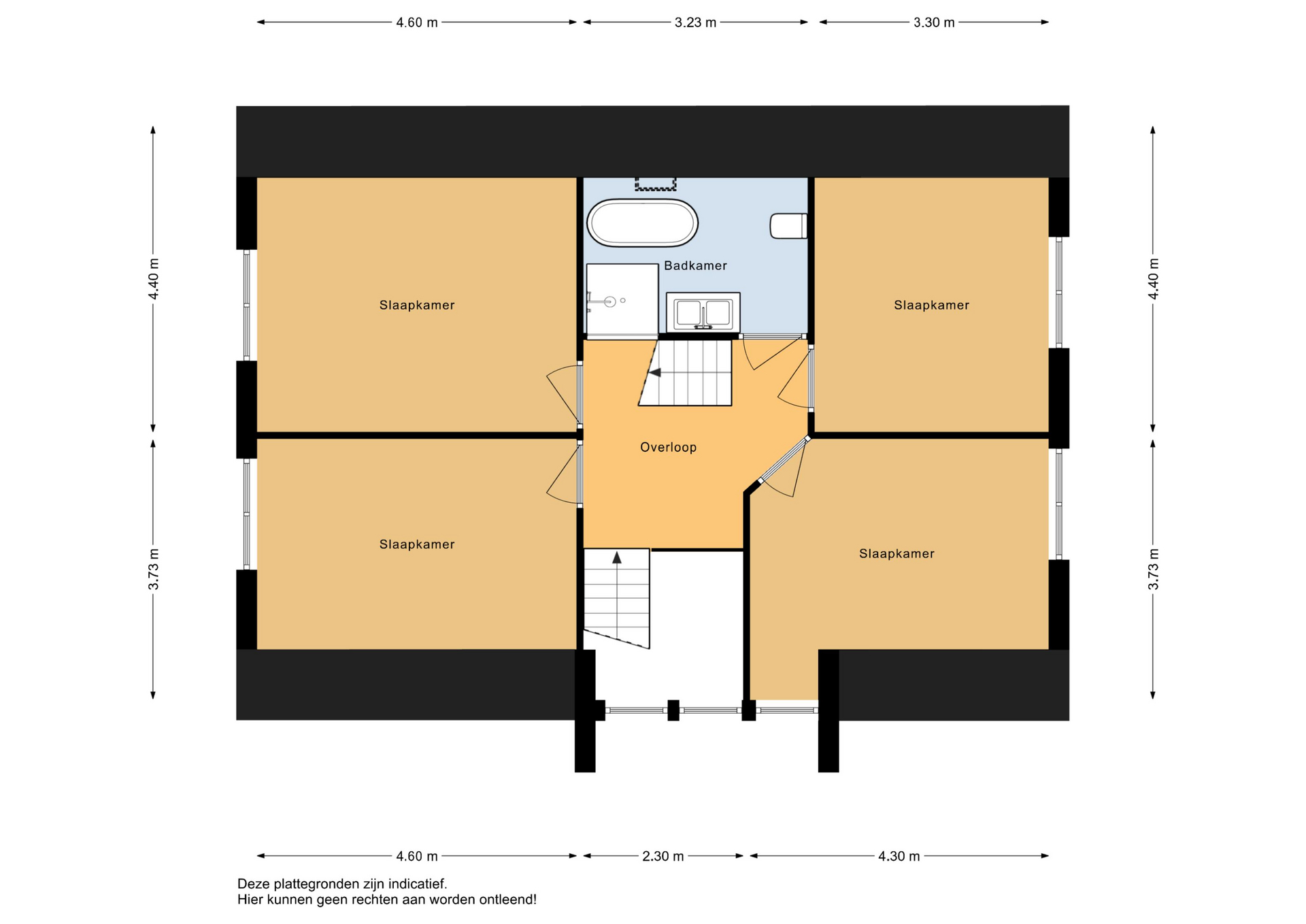 De eerste verdieping beschikt over 4 zeer ruime slaapkamers, met een oppervlakte van respectievelijk ca 20 m2, 16 m2, 15 m2 en 14 m2. Drie van de vier slaapkamers zijn voorzien van een airco. De luxe moderne badkamer is recentelijk vernieuwd en voorzien van douchehoek, ligbad, dubbel wastafelmeubel en toilet (wandcloset). De mechanische ventilatie bevindt zich achter het knieschot.