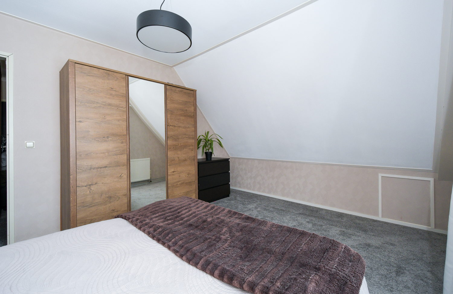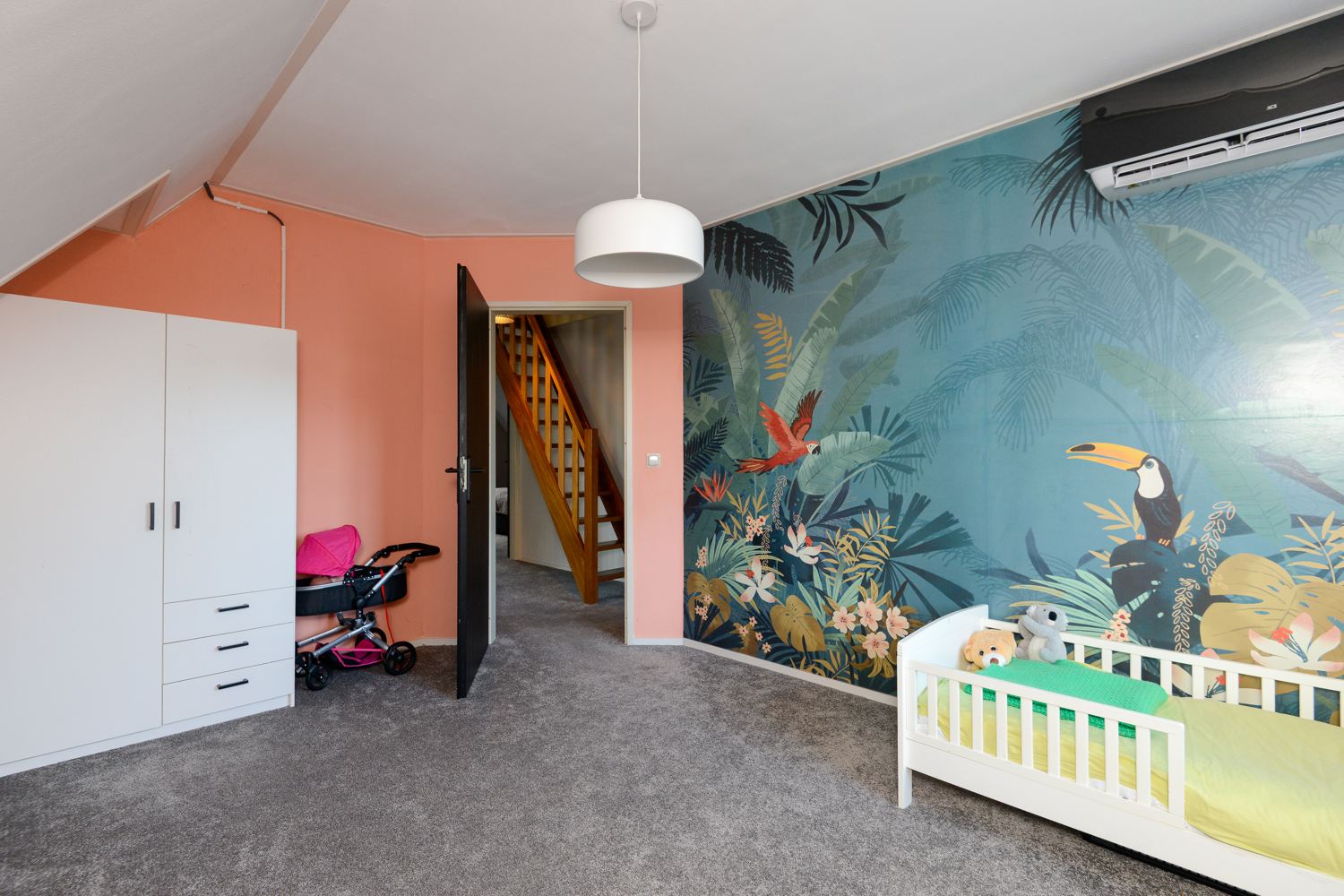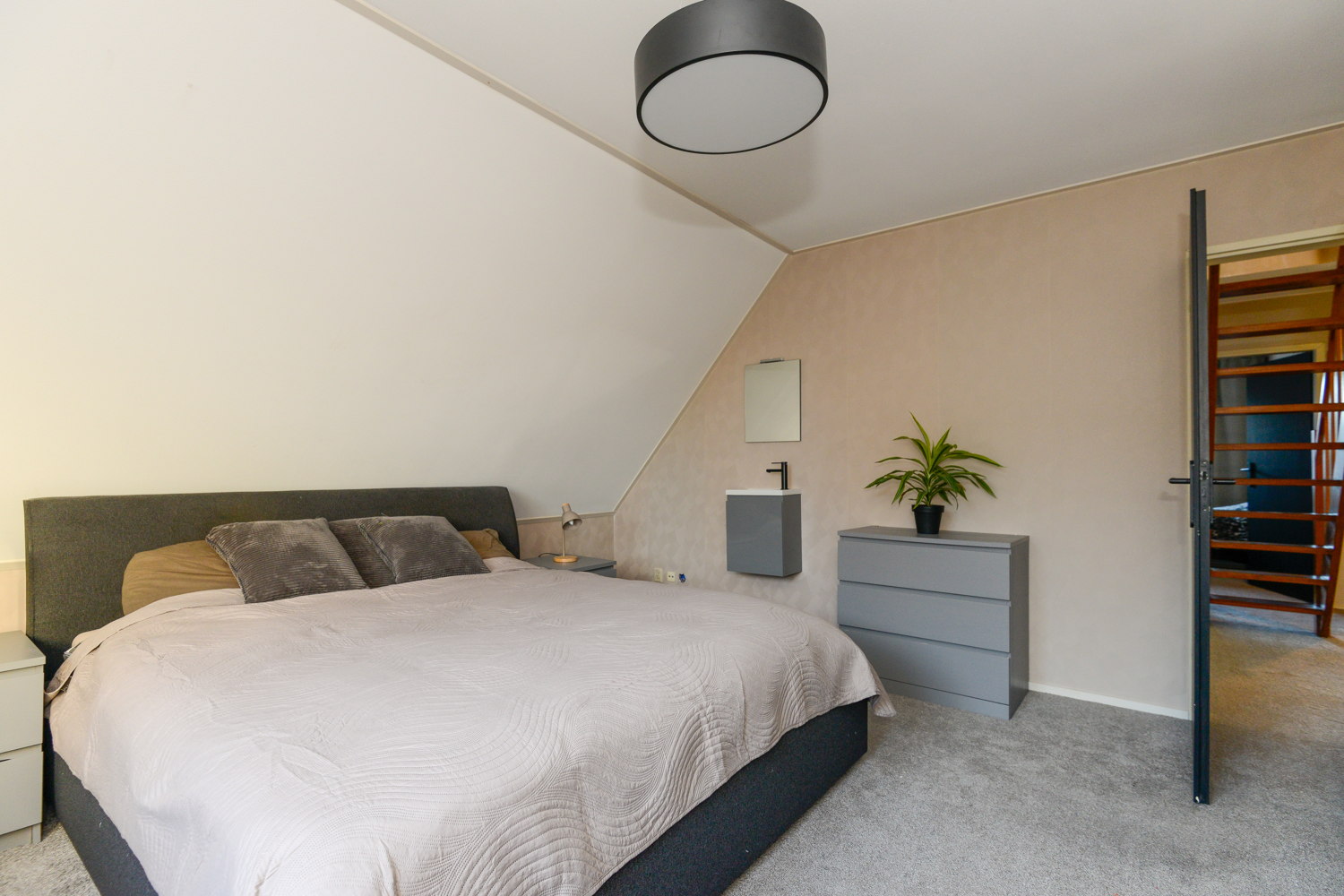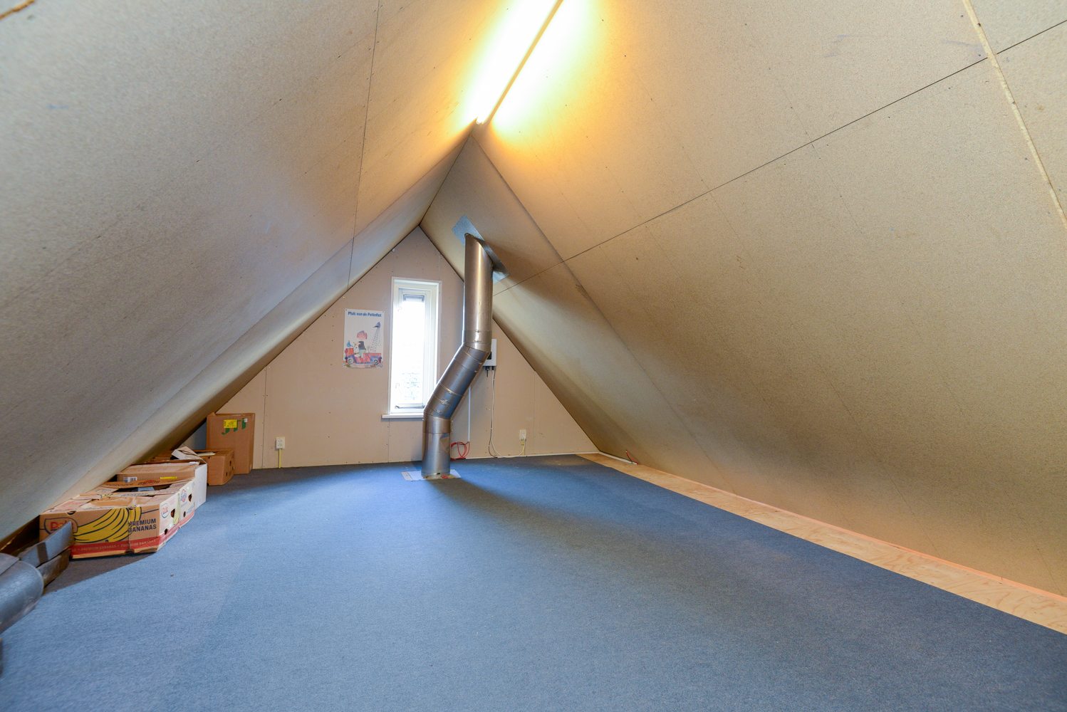Er is een vaste trap naar de zolderverdieping. Hier bevindt zich de omvormer voor de zonnepanelen. Ook bestaat hier de mogelijkheid tot uitbreiding met één of twee extra slaapkamers.