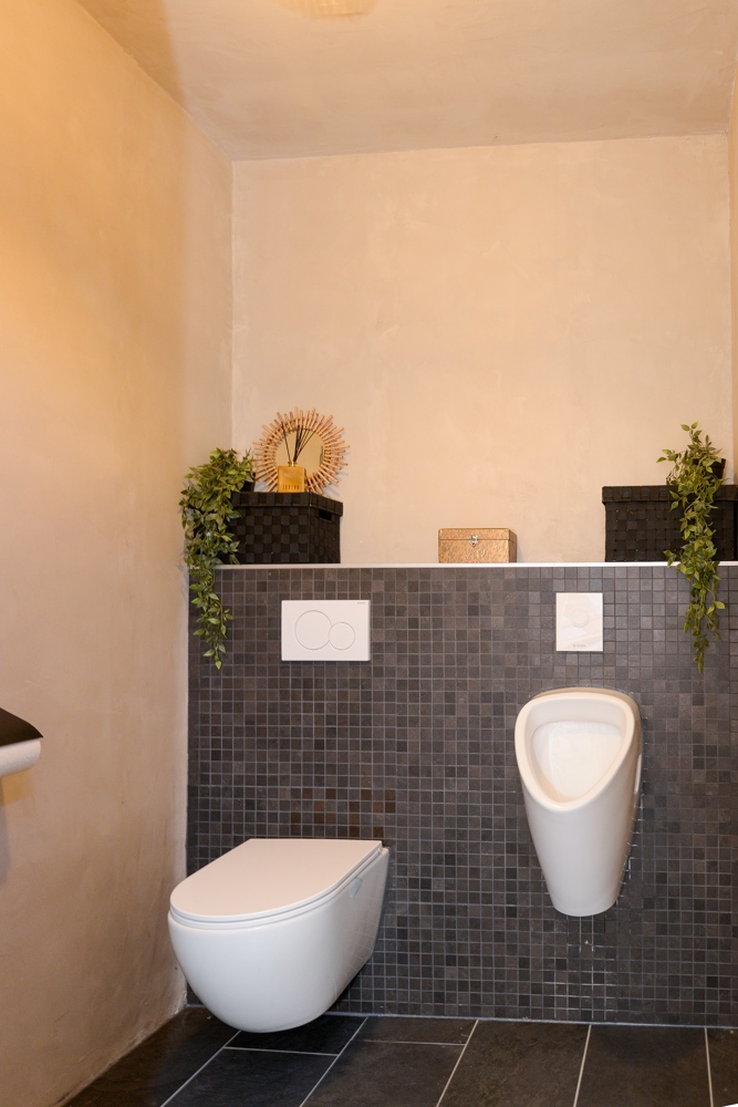 -moderne luxe en ruim toilet met wandcloset, urinoir en fonteintje (2022);