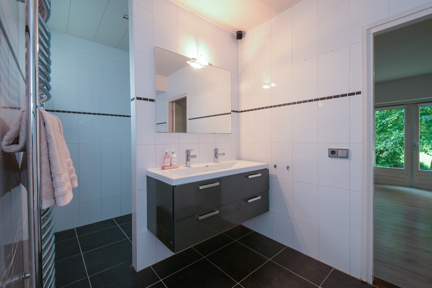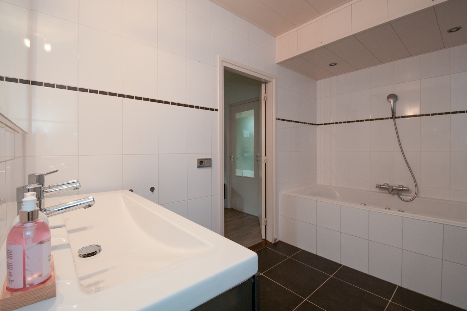 Inloopdouche, ligbad, toilet, wastafelmeubel, douche, en wastafel