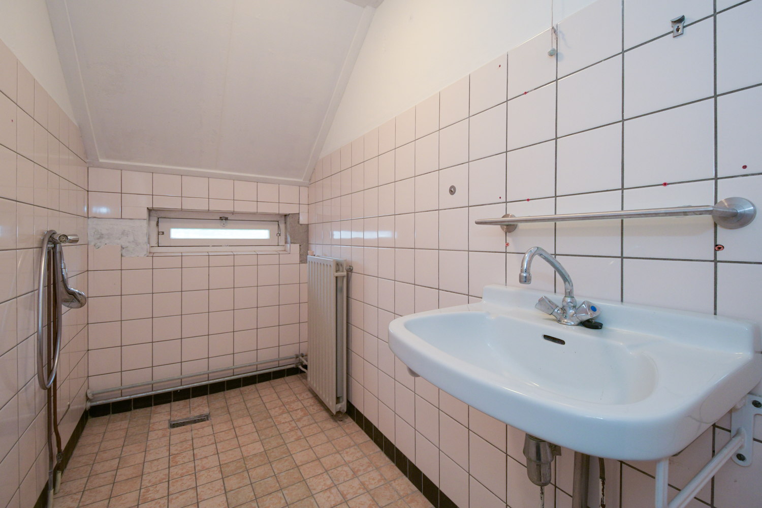 Op de eerste verdieping zijn 4 slaapkamer met een oppervlakte van respectievelijk ca 14 m2, 9 m2, 8 m2 en 10 m2, waarvan één toegang heeft tot een groot dakterras. De badkamer is eenvoudig en heeft de beschikking over een douche en een wastafel. Momenteel is de badkamer niet meer in gebruik, maar kan weer in gebruik worden genomen als afvoer en wateraanvoer weer zijn aangesloten.