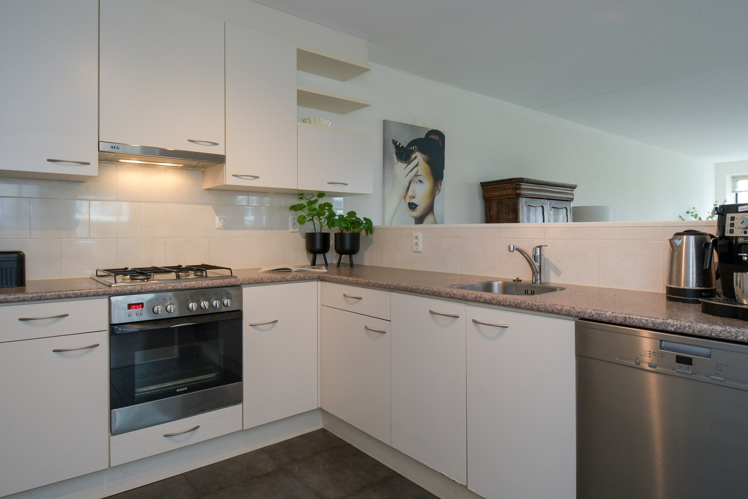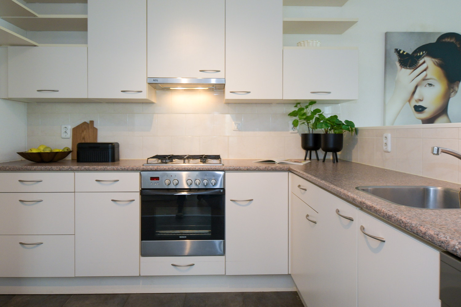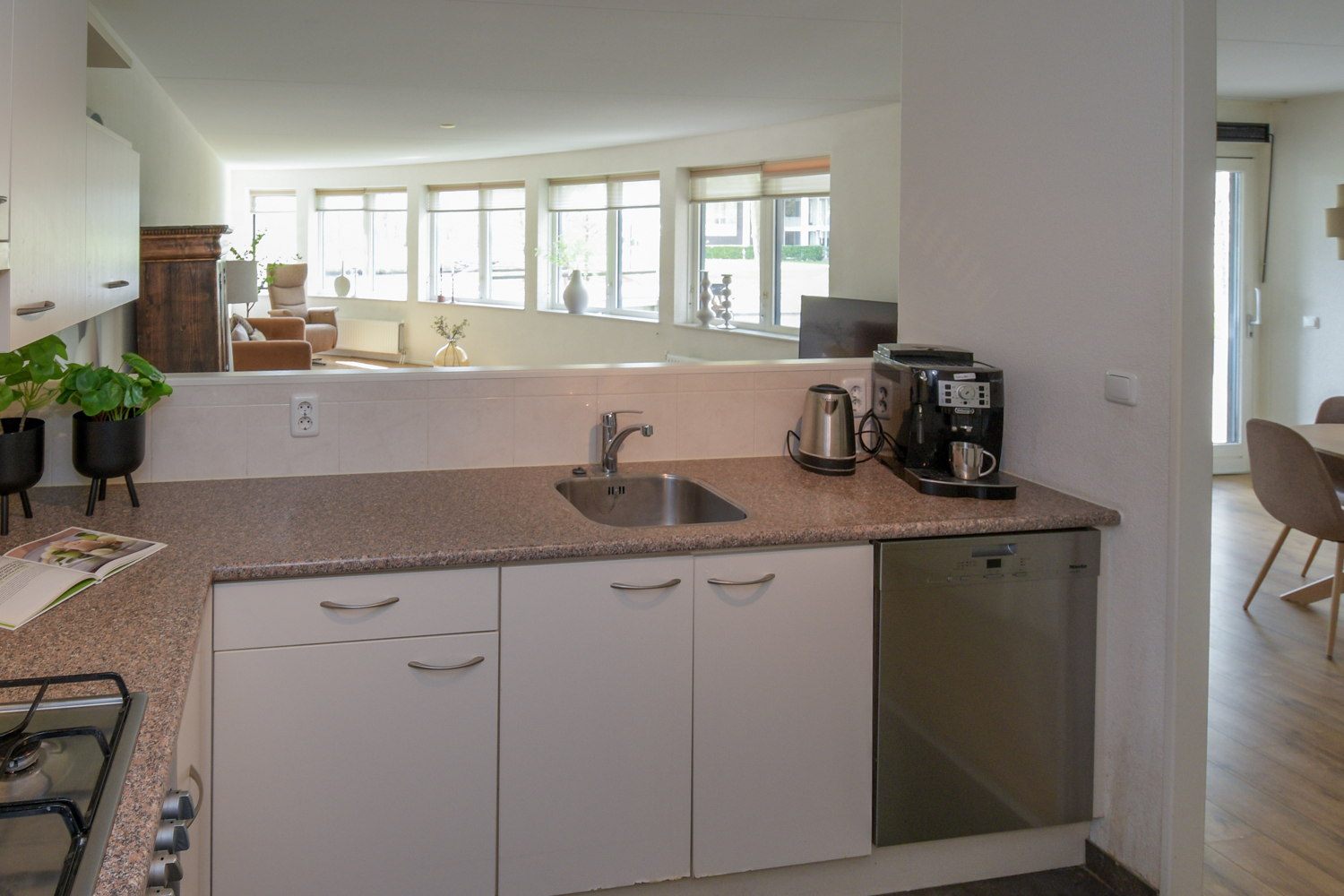 De nette keuken in hoekopstelling is van alle gemakken voorzien en beschikt over diverse inbouwapparatuur, waaronder; gasfornuis met oven (Bosch), vaatwasser (Miele) en koel/vries combinatie (Siemens).