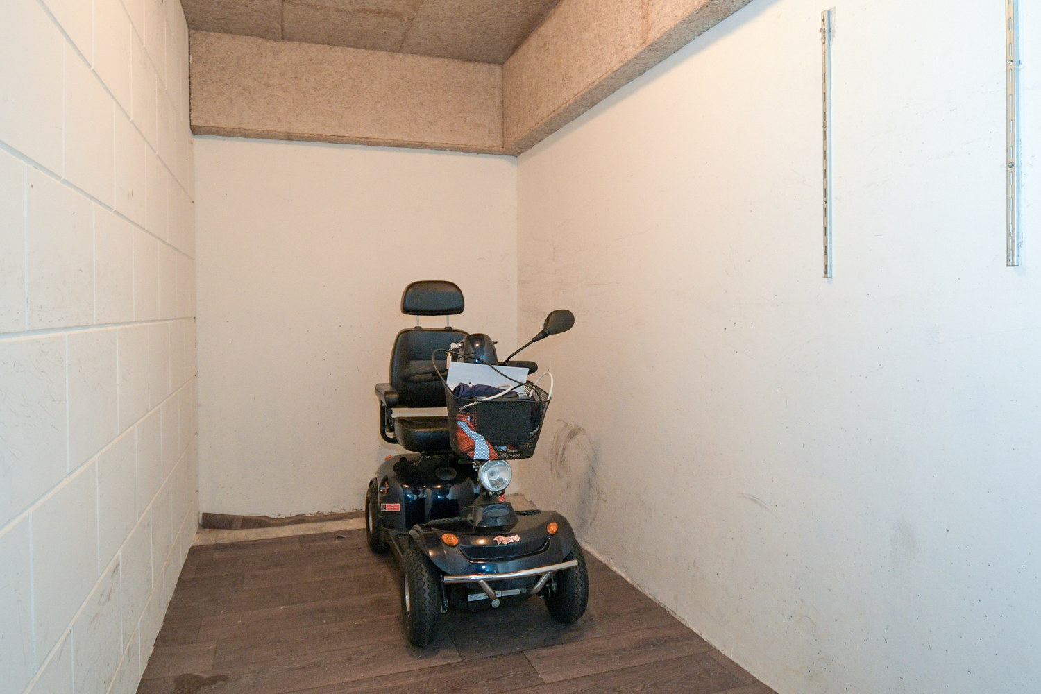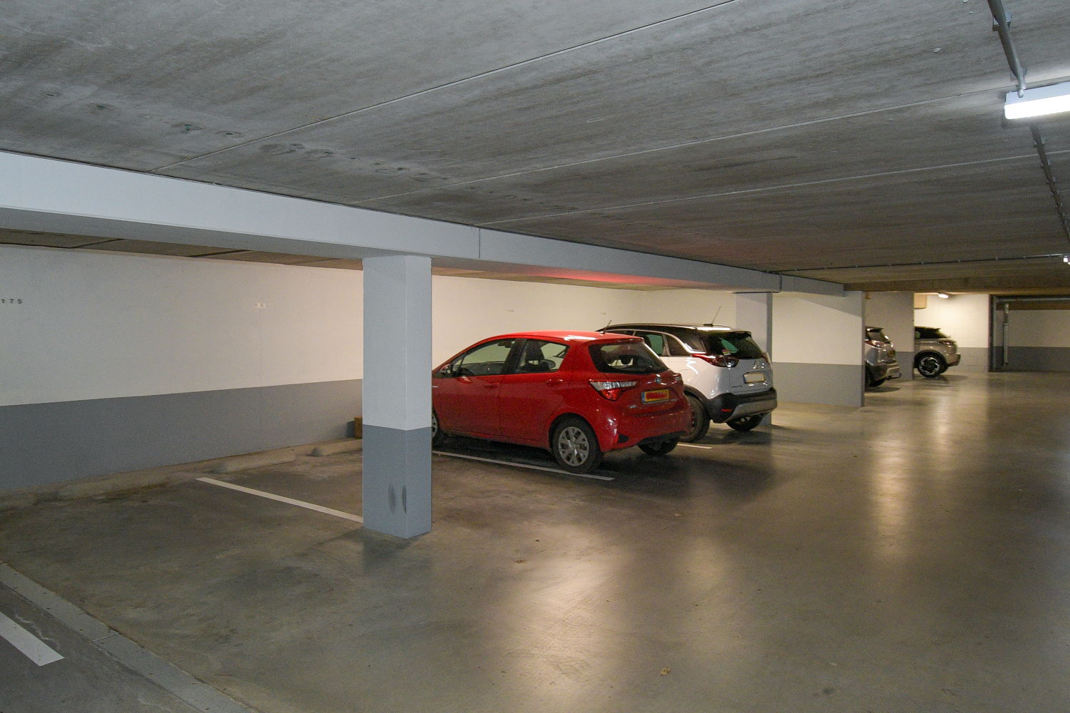 De ruime woonkamer, in halfronde vorm heeft door de vele ramen een mooie lichtinval en prachtig uitzicht. Hier ligt een prachtige laminaat vloer met eiken motief welke een warme rustieke uitstraling geeft. Via de lift of het trappenhuis is er toegang tot de parkeerkelder. Hier bevinden zich een berging van ca 12 m2 groot en een eigen overdekte parkeerplaats. Via een hellingbaan is de garage van buitenaf bereikbaar. Het toegangshek is met de afstandsbediening of sleutel te bedienen.